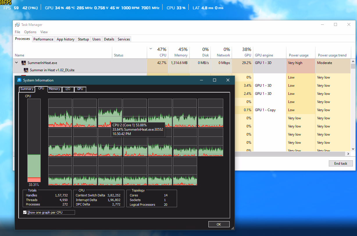 Maybe the game runs some graphics threads on the cpu instead of the gpu?