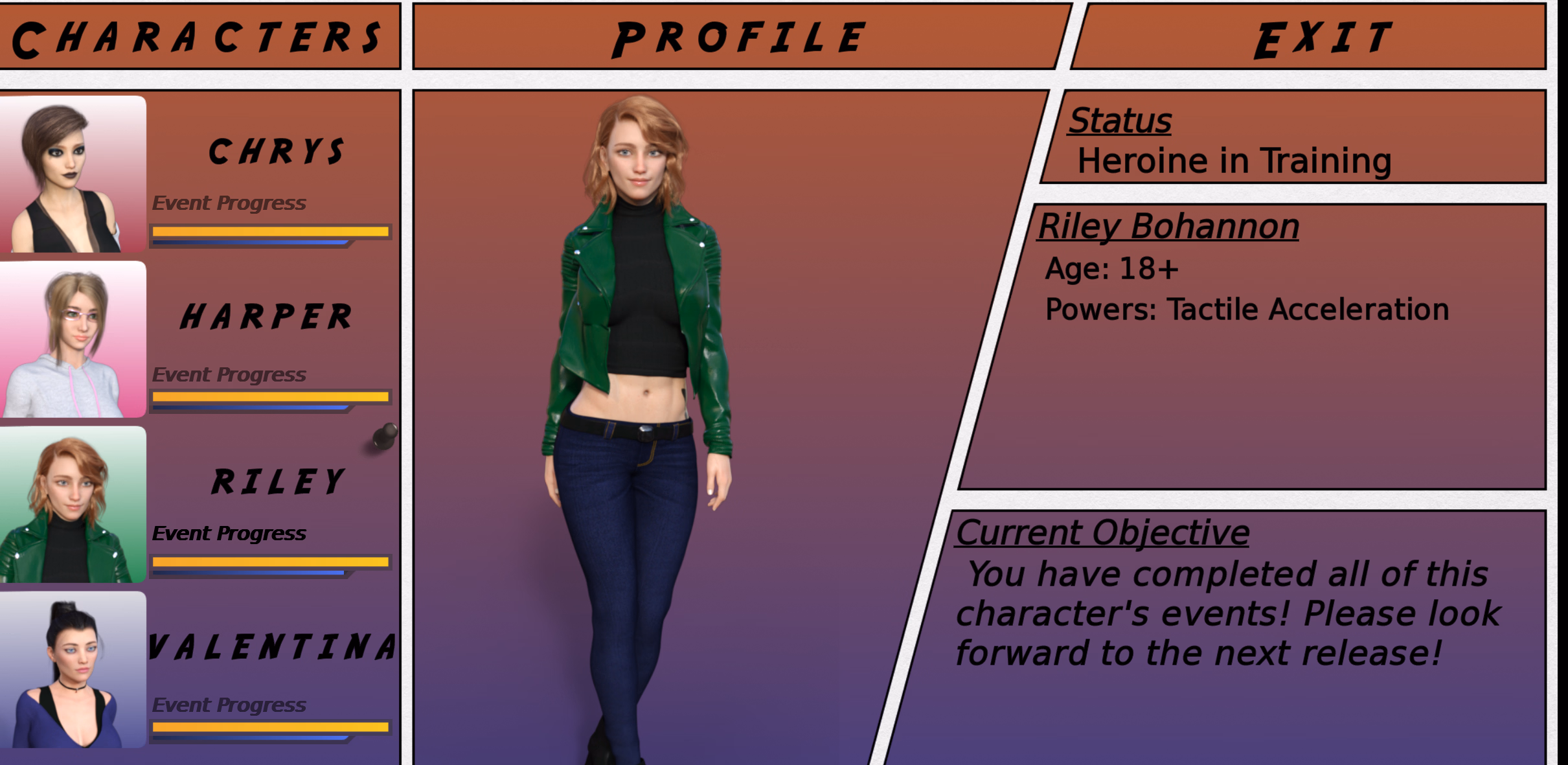 Maybe some few events about MC and the girls each becoming full heroes and starting teaching themselfs at the academy and through out. Helping others with power that aren't really recognised as superhero material and how they can use them to better the world.not saying that not happy but those sidestories after queen u got abducted started to get bit monotonous since only action (besides sex) was lovestruck battles and later ferocity otherwise same dull aka go place a-z and do something and repeat it later.