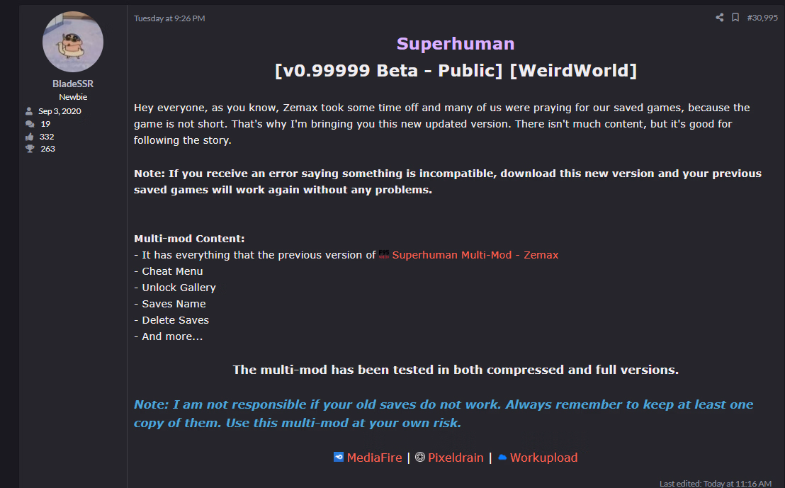 Various bugfixes included as well as a separate audio channel for sex sound effects, it's just in the menu with all the other sound volumes, so you can adjust the volume or reduce it to zero if it's not your thing.