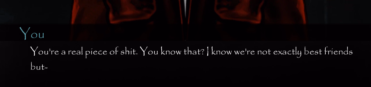 I only heavily antagonized him at the very end of the prison part, because that's the reality and he deserves to be called like that, he's a fucked up in the head.
