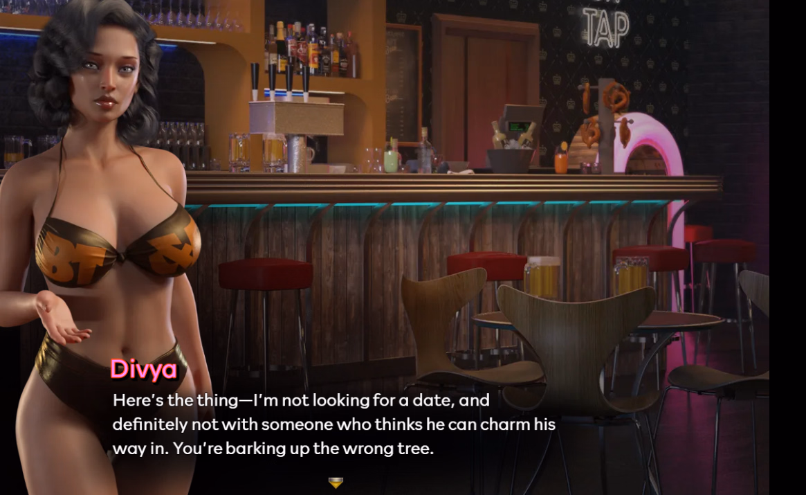 That bitch is a problem sinces the start ,,, Cant open her legs.. They cant fix it .. low IQ.Does anyone know how to open the third scene with Divya? I flirt and give her two emeralds, but she refuses again. Am I doing something wrong?