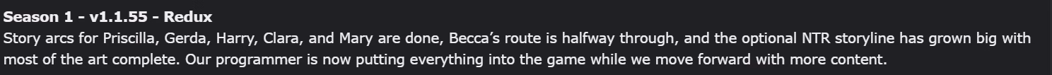 Do you want to see 4k images and video with some additional content added of the first 20% or so of the game, all of it in AI generated art? Play Season 1 Redux. <-- this is the "finished" retail version, nothing more will be added to it. Further Season Redux versions will be separate downloads in the future.