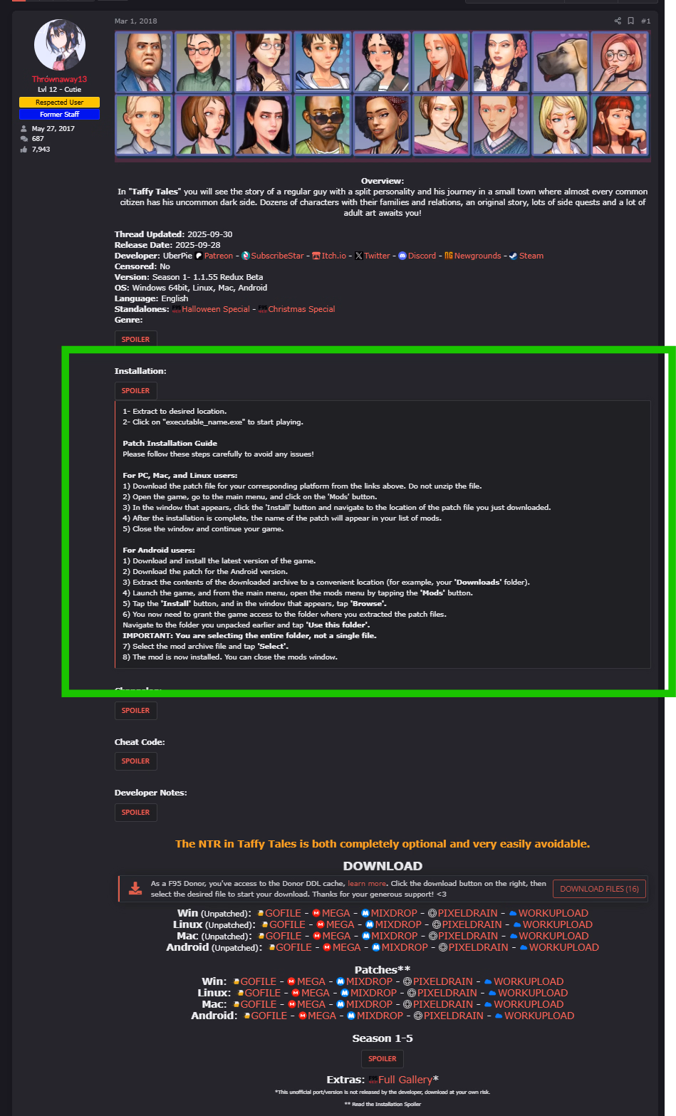 Because of itch's rules, Redux has violating content removed. It is unpatched. If you want the content, download the official patch and install it within the Redux. See instructions in the installation spoiler.