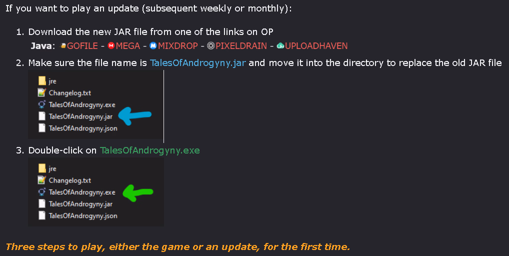 • Windows Application files, required to run the game at all, plus the current monthly build (the game up to date as of the 1st of the current month)