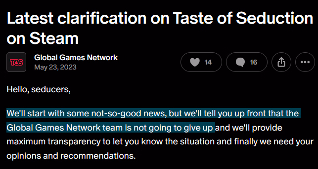 Let's talk about what's being moral when you pirate the game for free.The moral thing to do would be for the team to send out an announcement that the project has been abandoned and then cancel all upcoming & future patreon subscriptions. That would be the moral thing to do.