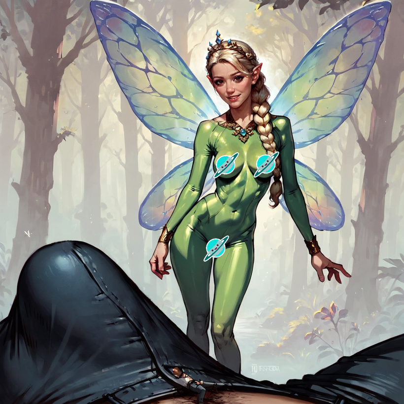That pixie needs breast reduction surgery or her wings won't carry her.