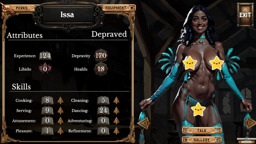 Releasing a new version with a brand new magical event, tons of new animations, bugfixes and improvements. Issa gets new portraits, Gina goblin event is now animated and a bunch of new items have been added to shops and the world. I've patched the shop save system (because shop inventories save now new items wouldn't appear on older saves) and finally destroyed the depravity popup appearing after mining minigame bug. It's gone. Puff. I might make it into an easter egg though.