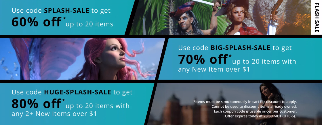 As noted, the character sale is only good for today, but there will be a similar 60% off sale tomorrow, it's anyone's guess what the theme will be.