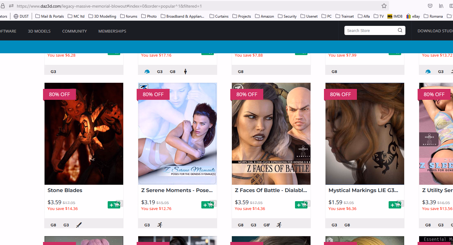 As for Daz3D.com, I'd definitely welcome more predictable sales. Yes, this thread exists partially to call out the glitch discounts when discounts go wild, but if the 'new' sales strategy is to simplify things, I'd welcome this. I burned out on playing cart Jenga a long time ago...