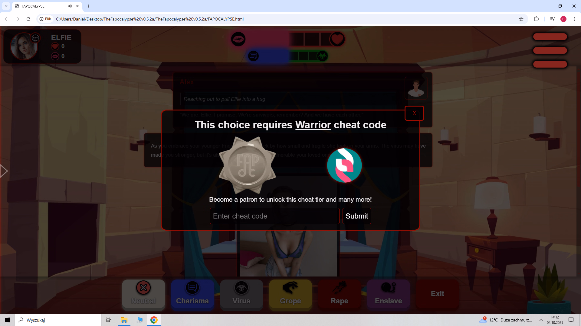 seeing this game turn into whatever the fuck this is now is reason enough for the modteam to add a vote-ban to eliminate games/devs such as this/them from f95zone. let this dev go elsewhere.