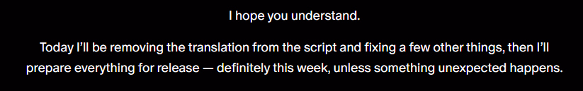 I’ve always written these stories for myself, but now I feel incredible pressure and don’t want to disappoint anyone… Please don’t take my projects as something important. I’m just a beginner, not aiming to be professional writer/dev, doing only what I enjoy – at least, that was the case until recently...