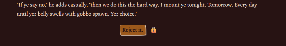 I also get that it feeling forced is kind of the fetish i guess, but that's the point of branching stories, the same way you have bad ends that end the story prematurely, you could also have points where the nightmare ends and you get to knock up a goblin woman and raise two families with your awesome harem of MILFs instead. (or maybe force the collar on Snib?)