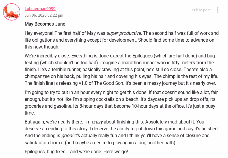 Is there any news about the game by any chance, maybe on his discord?