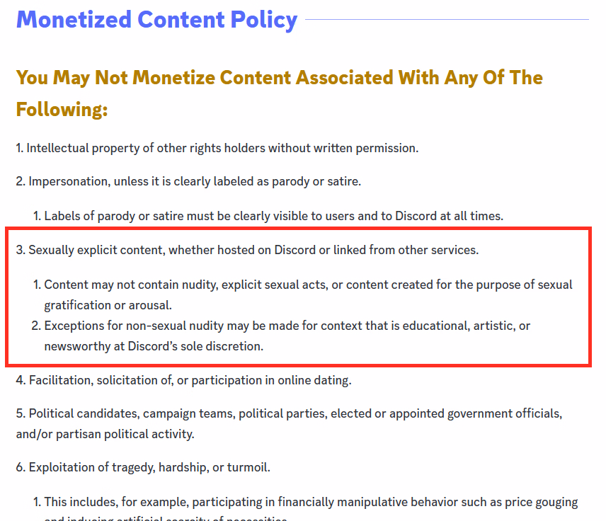 he is right about the server rules but as i wrote above monetization is a separate thing with its own rules. that is why i pointed it out. my intention is not to create any drama or argue with anyoneYou're probably right about Discord Tyr, but there's no need to be so disrespectful towards someone who was just trying to warn me about something that he/she believed was a problem. I've already lost most of my followers this year because my naive understanding of Patreon's rules. I appreciate that someone make me stop and think things through before I get banned everywhere.