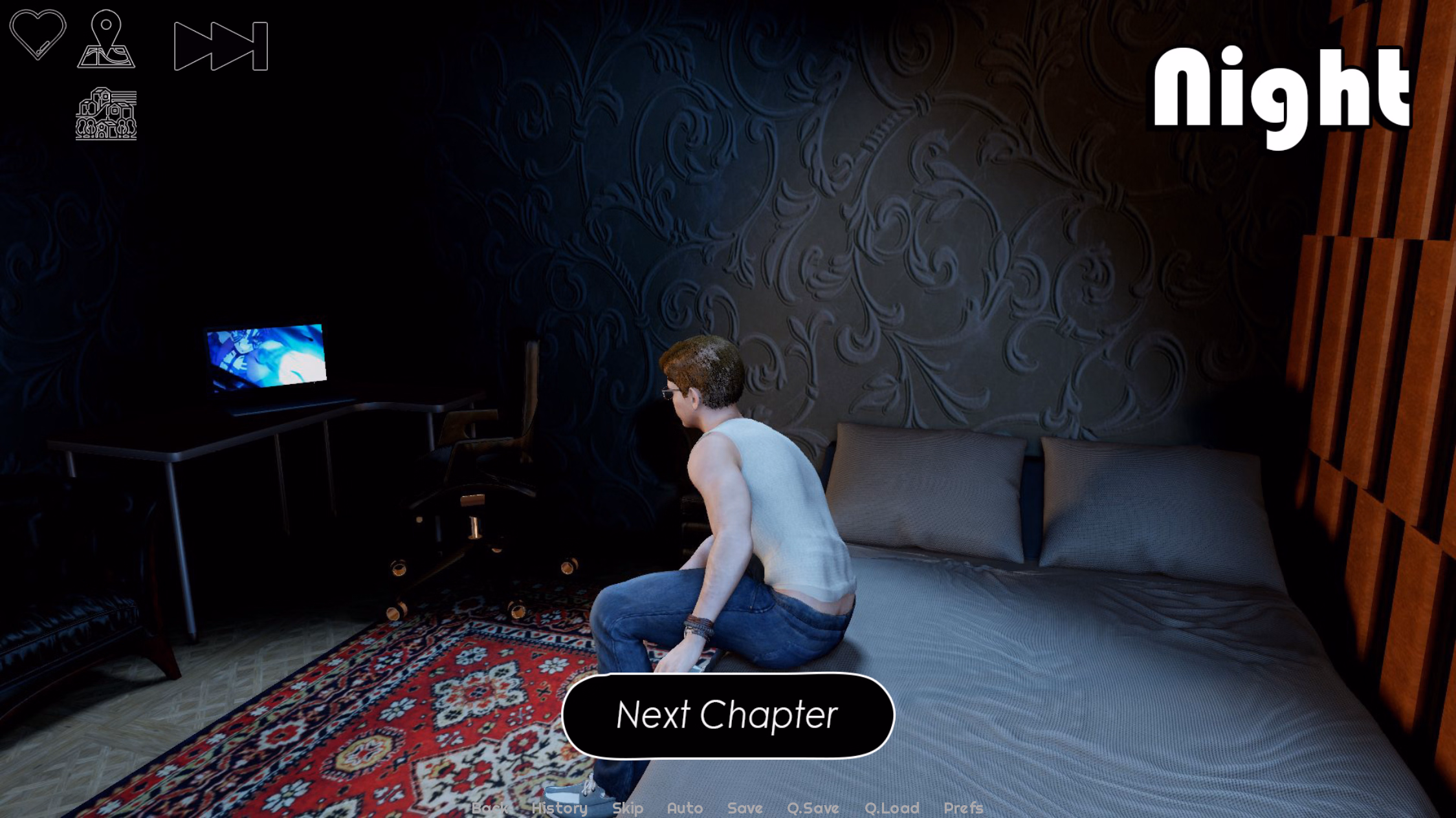 Once you have seen all the available scenes, a “Next Chapter” button will appear at night: