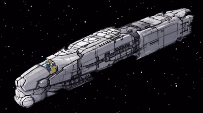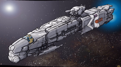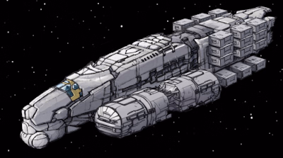 For Scene 4, I needed an external visual of the Miner's ship for the rescue montage. I've messed around with this task a few different times since very early in the project but not really managed something that I liked.