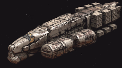First thing I tried was to find a 3d model I could use to render and then use Img2Img to convert to the game art style. I looked at a bunch of different 3d ship models... but nothing satisfied: some were all too small (surface features scale wise), or too massive (could not be crewed by only 3 people), or would be too "clean" - I want the style of the Miner faction to be roughly made, cobbled together from parts, dirty and rusty. A bit like the Belters' craft, if you are an Expanse fan - 100% designed for vacuum and who cares about how it looks.