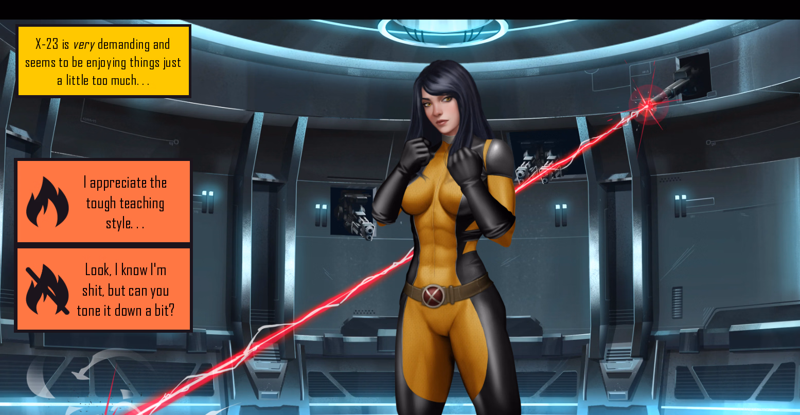 I find all this text spamming really annoying, and the most annoying thing is that you lose love points if you don't reply. Yes, send Jean some records or whatever for the 20th time, I mean come on Jean use X-MenTUBE and watch some music videos instead of bugging me.But then, if at night you stand in a girl's room before asking her to watch a movie or to fool around, you can text her «Goodnight!» while she's standing right next to you.