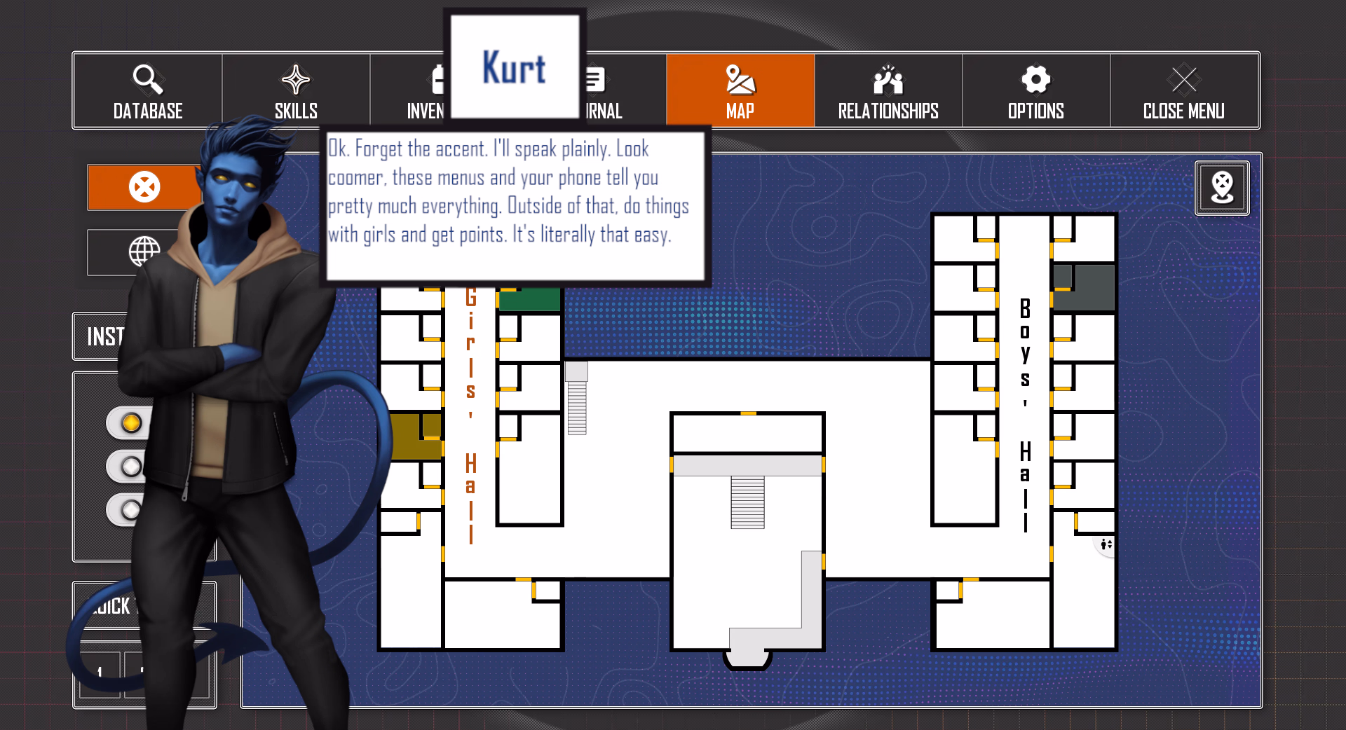I am doing a genuine play through, not build tests, and I'm keeping note of everything so that way I can have my own tangible feedback to provide the team rather than just player impressions.That's the part of the game that I wanted to be destroyed and rebuilt for almost two years. Boots assured me that they're "working on it"/reassessing which actions they've deemed as "flirtatious" can be considered platonic, and thus should be girlfriend approved, in future versions: like the differences and implications between paying one of you lady friends a small compliment about their hair, saying that they've been helpful with studying and working out, or buying them a t-shirt, and saying that they have a nice ass while trying to buy them lingerie and sex toys.