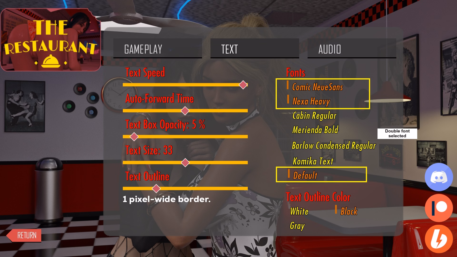 The audio/quick menu bug is known, someone reported it a long time ago, and my programmer knows about it too, so it will be fixed. About the text,that’s not a bug. For character names I’m using Comic Neue, and for the text I’m using Nexa. That’s why both are enabled,it’s not a bug. But thanks for reminding me. I will check all the reported bugs and see whether they’re fixed or not.Xell, I know you're striving for perfection with your game, so here's some little work for the programmer.