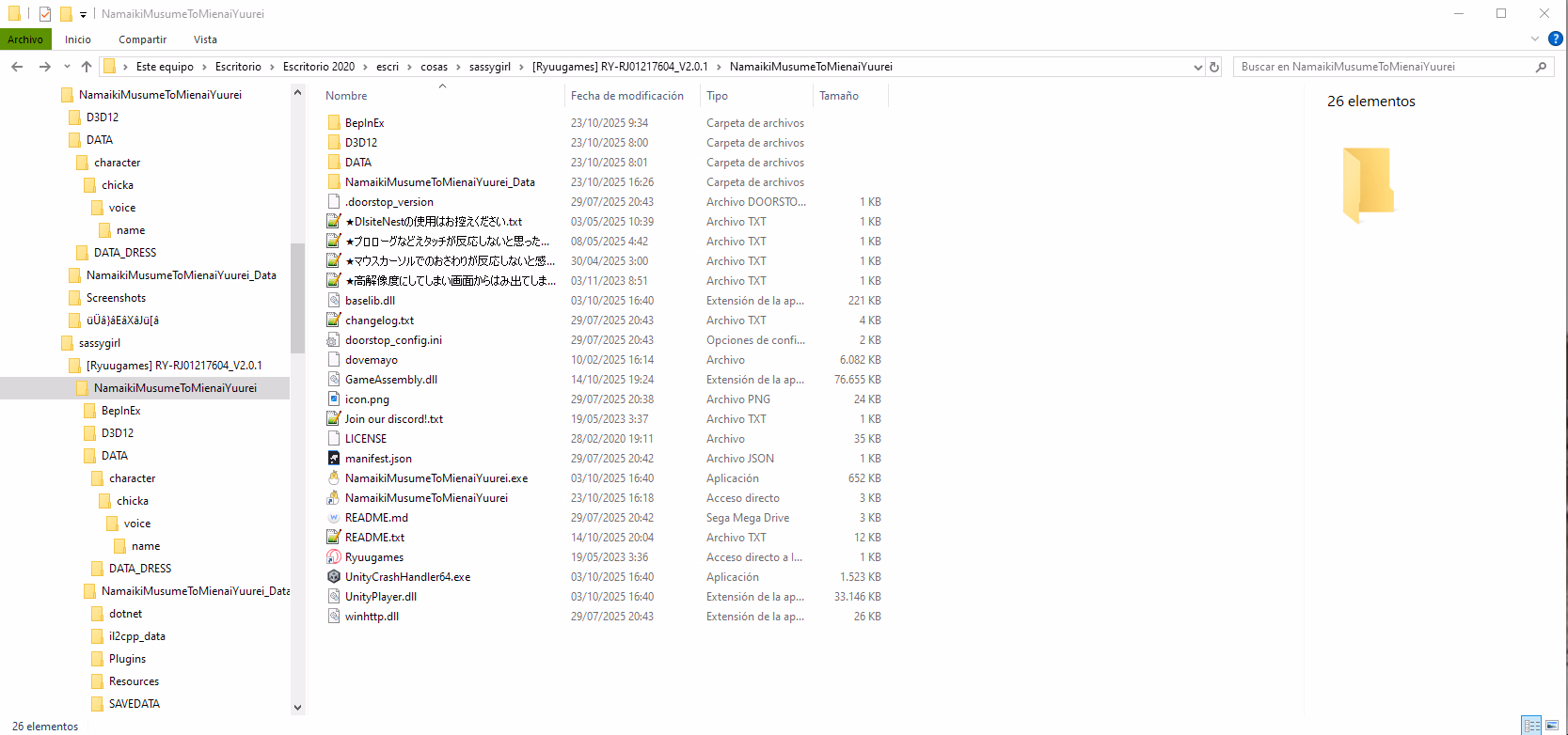The images you have here are newly taken with sharex, the game that someone uploaded with bepin ex, the bep is set incorrectly, because I had the folder in NamaikiMusumeToMienaiYuurei_Data, when it should be in the root directory of the game. After skfikops I have that file that I downloaded and overwrote the one I had before and it worked without problem, even though I had the game in version 2.0. As I said before, I have an AMD Ryzen 3400G with Radeon RX 580 8GB and 16GB of RAM, so if bepin is installed correctly, it shouldn't give any problems.