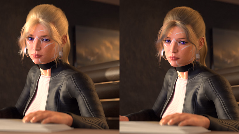 For lighting, we are now working on the still images. We have rendered Kali's path. Initially rendered, her hair came out very bright. I re-rendered it, and it seems good now (even if she did look quite cute with the bright blonde hair).