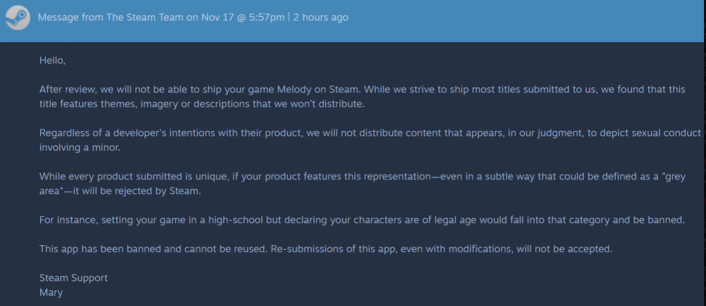 Melody got rejected by steam because the girls look too young. So we most likely will not do any games like that again (with younger girls). We will do rather mature women - not because we like to, but because we are forced to.