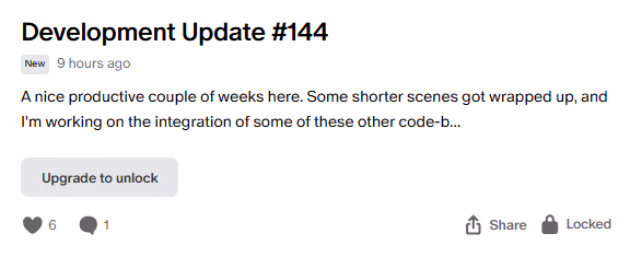 I dunno about him "following through." After all, following through would mean an actual update, not just saying that you're not giving up the ghost. And the dev has a financial incentive to not admit that for as long as possible.This much is fair. I'm on the discord and the dev is active. He himself states that this is one of those updates that got away from him, but he isn't abandoning, he's taking his time and making it work. He's putting it material for previews regularly. Sometimes, scale creep happens, but at least he's following through, you know?