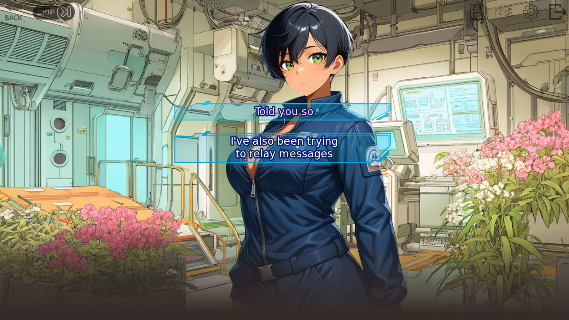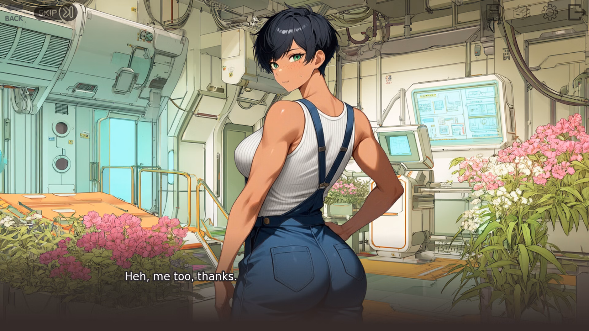 Stranded in space with a tomboy!? A freak solar flare leaves you stranded in a space station with Eva, a confident and athletic tomboy woman. Work on your rescue mission and learn about Eva's life, about her hopes and dreams, as you slowly become her confidante and you learn to love each other.