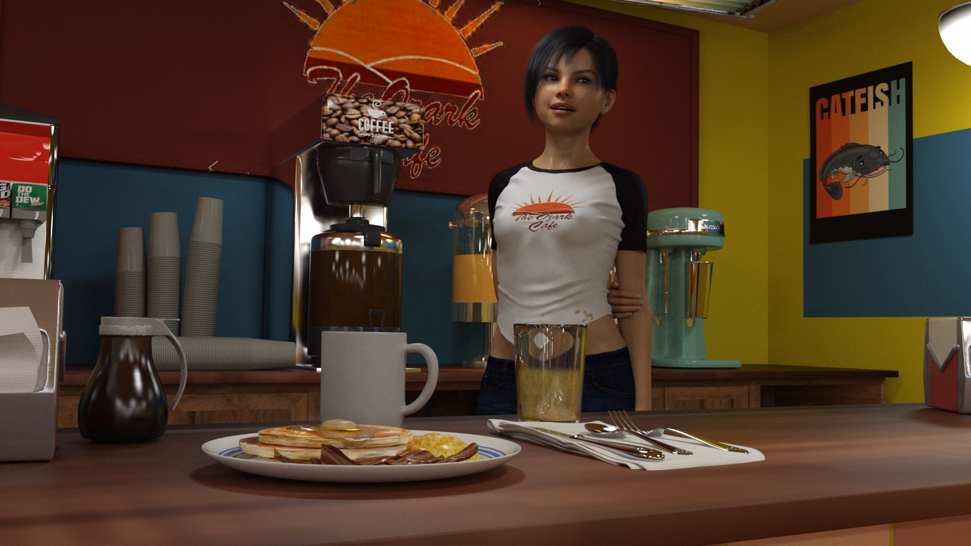 That is my favorite scene in the game so far. Not just this update but the entire game. I had so much fun with that one. That scene is actually one of the scenes I added after I had finished the script. It was inspired from this screen from the show It's Always Sunny in Philadelphia. I just kind of did my own thing with it.