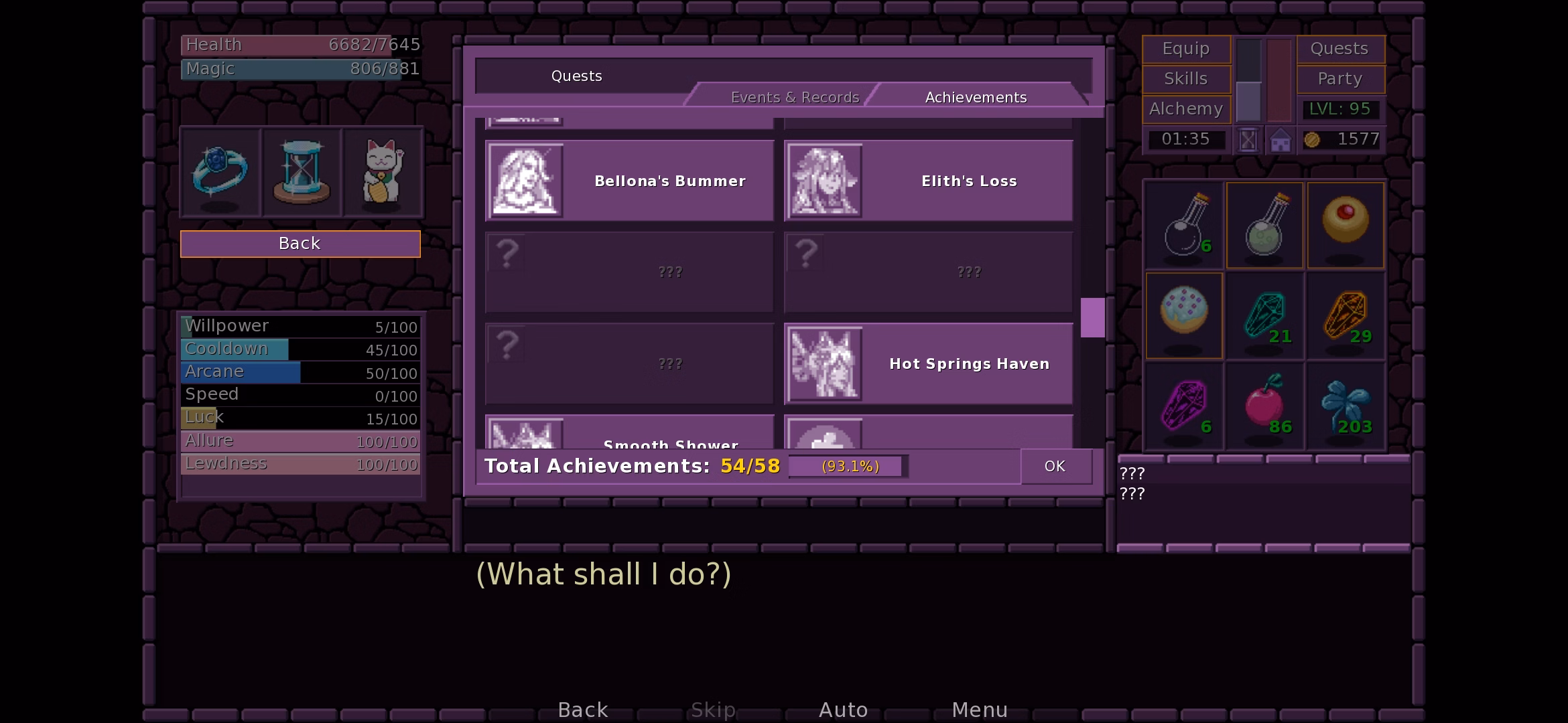 There is a description of what to do when you hover over the achievement, it can help you a bitView attachment 5364521 anyone figure out these 3 achievements yet? I have 156/156 secret events yet it gives no hint for these ones on my end. The other one I have left is the bugged hot spring achievement with Faylen
