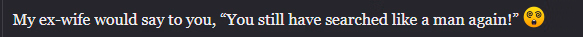 MOI : Mon ex-femme pourrait te dire "Tu as encore cherché comme un homme !"