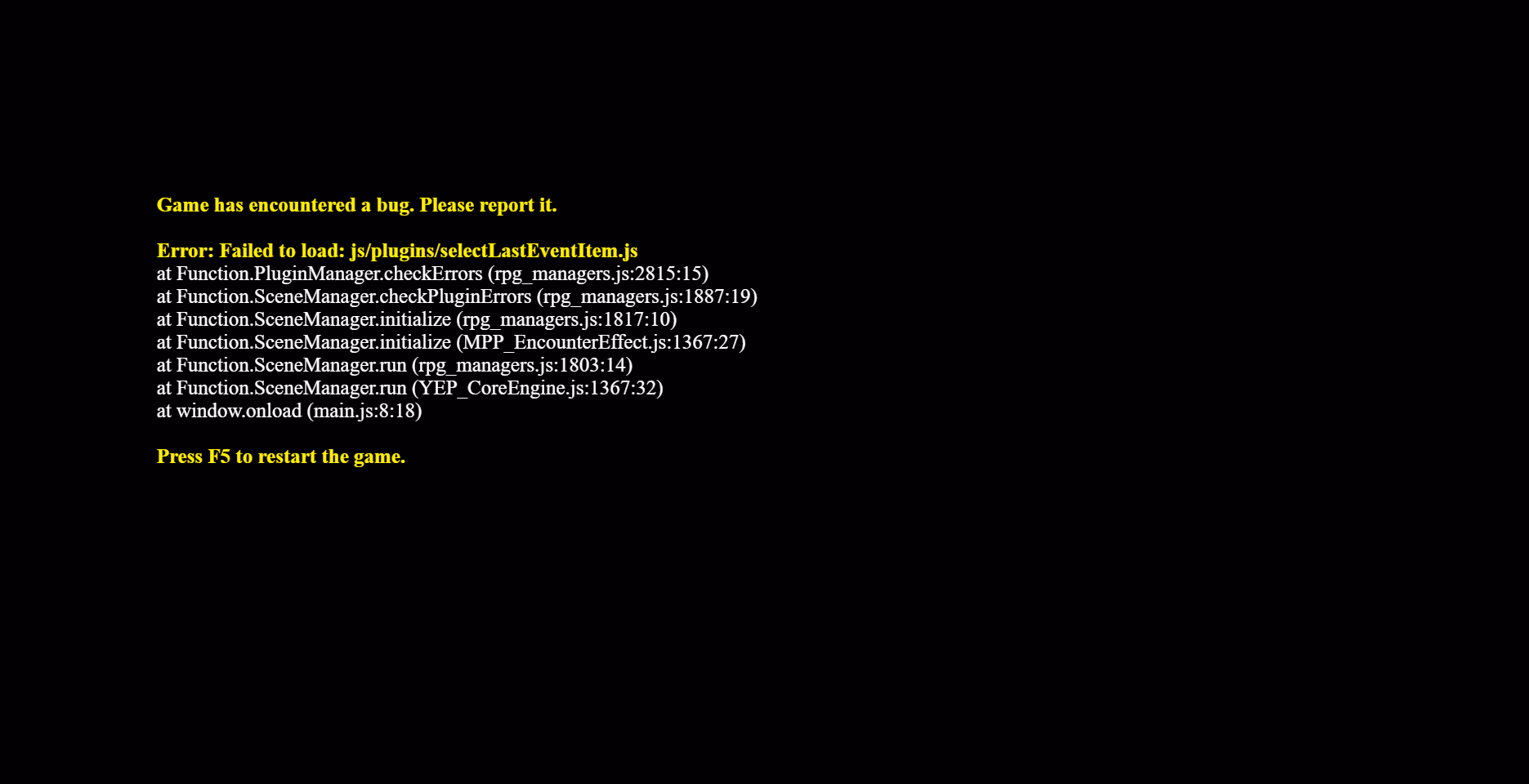 Shisaye I have the same bug as mentioned before, tried looking for "selectLastEventItem.js" but couldn't find the file inside plugins folder. I updated the game to v3.1 with the previous patch shared. I'd appreciate your help with this