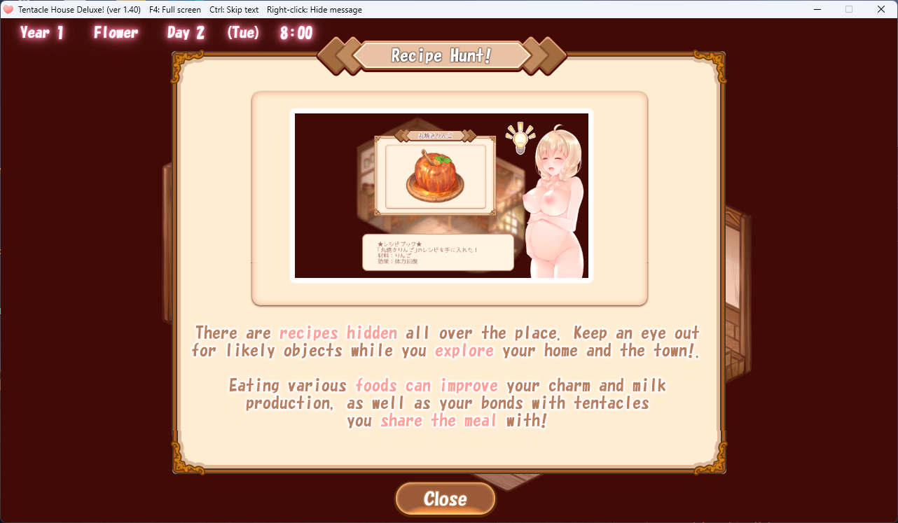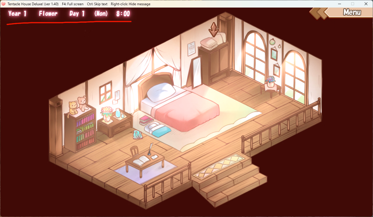 The bedroom interactions are finished, and sleeping, the closet UI, and the Kitchen intro are done.