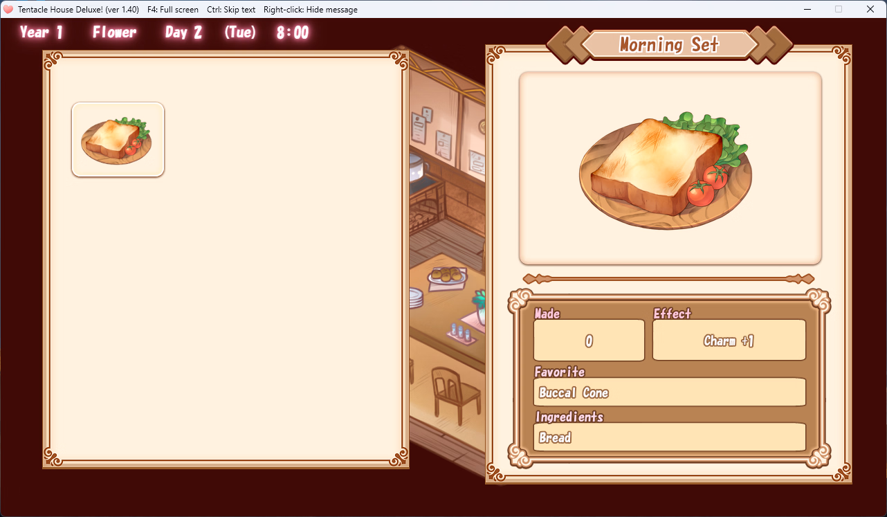 Recipe texts, food images, eating with the tenta-kuns'es is all done, only about a quarter of Olivia's "flavor texts" when eating is left to do. ( This last part feels really tedious for some reason! :HideThePain: )