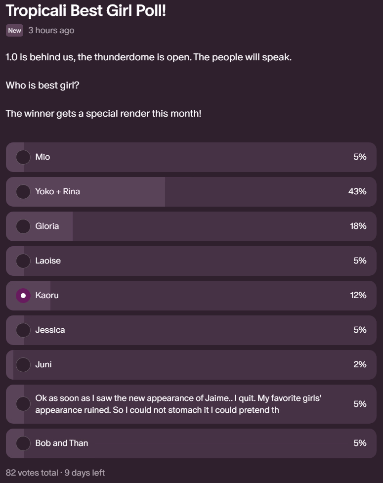 From what I can tell, his other game is still ongoing and more than halfway done, though it probably might not be such a depressing end based on the listed themes and Tropicali ultimately started as a "shitpost side project" that had a very different tone than his main project.Does his other game end this poorly as well or is this uniquely a problem with this game?