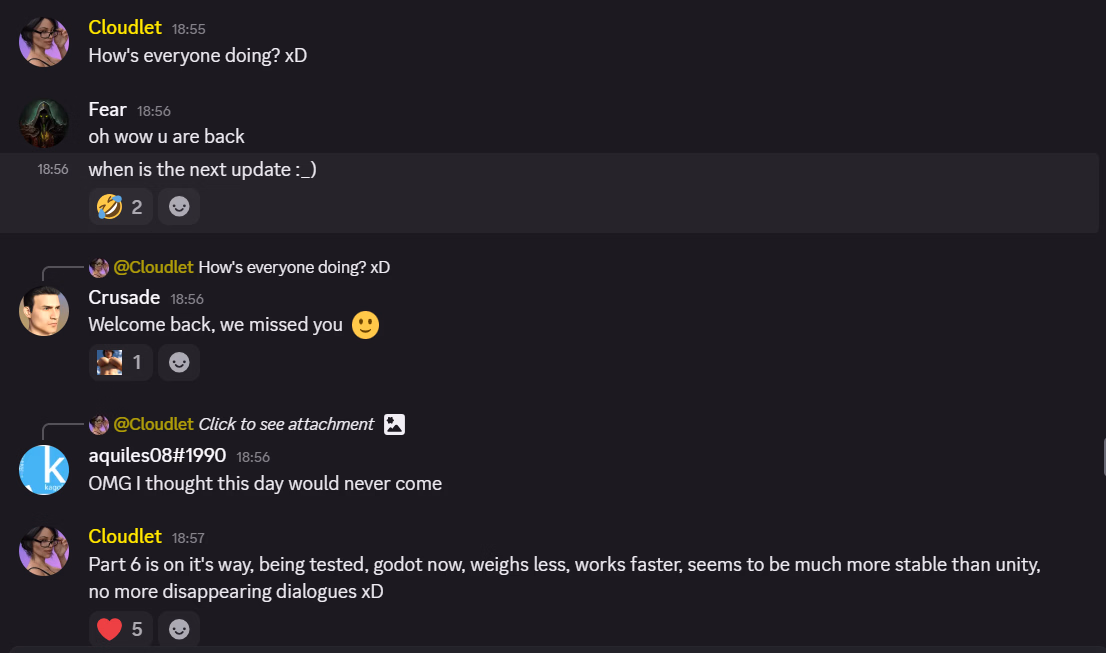 That discord message to everyone and then Cloudlet out of nowhere reacting and giving signs of life really started to give me hope again, although I'm trying my best to say to myself that is just a false alarm.Legends never die View attachment 5316452