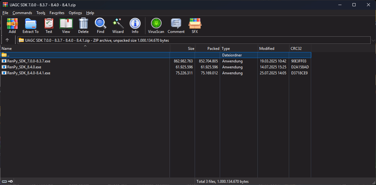 RenPy_SDK_8.4.0-8.4.1.exe md5:956e4102ea2610b35813e729f89bc387 (can calculate using 7-zip if installed in right mouse button right click 7-zip submenu to check if downloaded files are fine)Not sure why but i dit download now two times the sdk's from two diffrent links and every time i get error 0x80004005 if i try to extract any of the sdk exe files.Ok you can not extract it as single file you need to extract the all files together.