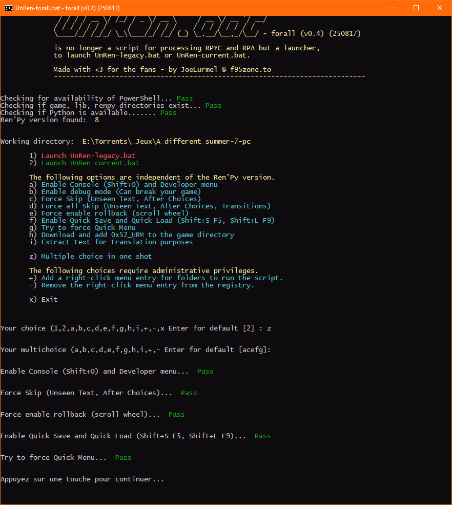 I have no problem maintaining all Ren'Py version in a single code, and it's even much simpler for me, as long as I haven't finalized the code I use for testing before a Python version that would be faster and, above all, would report errors in child scripts and not just those in PowerShell, as is currently the case.