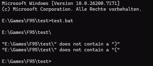 No Windows batch file works with () in the path, so no correction is possible. You must delete them.If the path contains either ( or ), the script will currently not work because this will fail