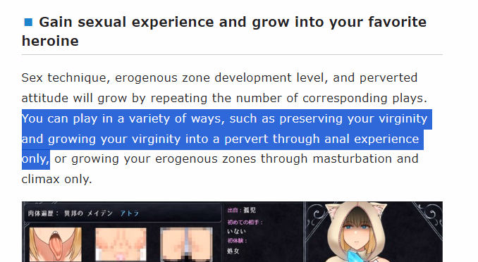 All in all, this game is doing even better than I had originally hoped in terms of what I expected. I already had a good idea of what the game would look like from following the ci-en for a loooong time now, but to have it actually here and see how its executed is a blast frankly. The wait for the full release now is going to be a much harder one, but at least if nothing else I can continue to tinker around with the trial to see what else I can find, and maybe try to optimize a path to the first boss of the dungeon. I've also found the ghost girl and witch, both respectively in the eastern half of the dungeon, with the witch giving you access to some spells and a piece of equipment as well that you can't get elsewhere. Very fun stuff so far, lots of potential for roleplay frankly that *many* hentai games, even as far as RPG's go, happen to lack frankly. Definitely poised to become one of the better hentai RPG maker games I've ever played in all honesty.