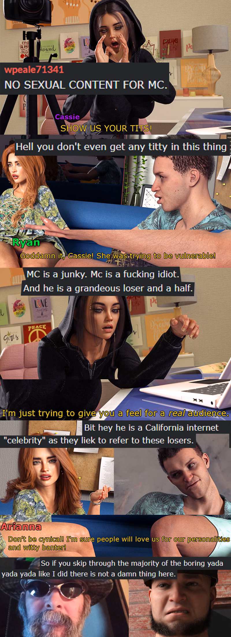 ViralRivalz Pretty solid release, a bit short, but is mainly to show some background get some more info on things. I hope we get more to the day to day stuff once we get a bit more in, and slow down at times, feels like we are moving kind of quick still, so hope we stop just skipping through episode after episode of in-game podcast, and see more of the story and relationships form a bit more in real time, and just slow down a bit.