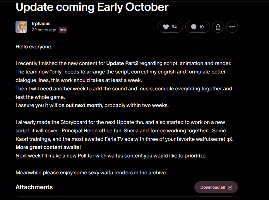 Unless it's pushed to the next half of an update. I meant fourth. Scratch that, I meant eight. Or was it sixteenth?Finally, there is more content about Helen. I hope it will be more *in-depth*.