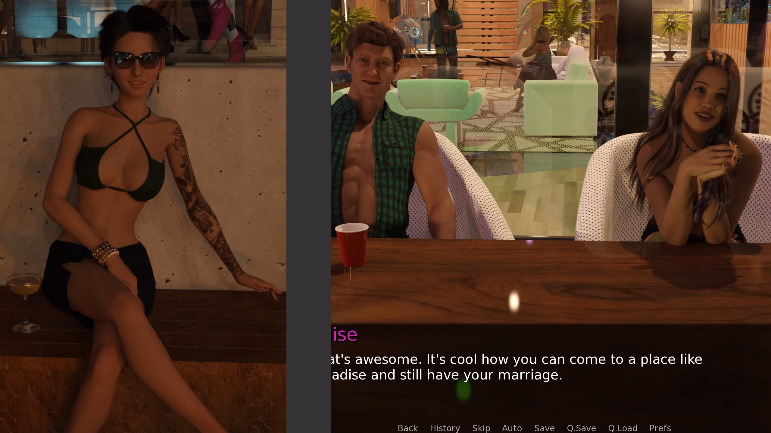 just got through the update, man is it ever broken, but still even more paths - I cant wait for development with this couple or this couple:Hmm, I actually dislike games where the MC is not jealous, it starts to remind more like pimp-slut kind of relationship. And especially when the MC is totally okay with the FMC doing whatever with others. Like, in Paradise City there is this "dominant NTS" path that I personally called "the crazy pimp path" - on the first day on the island the MC lets a guy they just met and 3 random passerbies to fuck his wife on the beach in this crazy gangbang (he participates too). There was no humiliation to the MC, no signs of his sexual weakness or anything, and indeed the MC is rather dominant. But it was so dirty that I immediately disliked it.