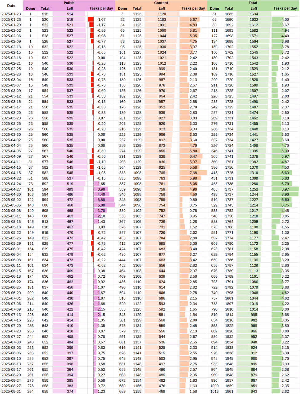 They keep adding to the total, but they add more to the completed. We must accept this is their normal workflow, with more tasks popping up as they advance the project. But as long as the completed tasks increase faster than the total tasks, that's fine by me. That's why I post the evolution over time of the number of tasks that are left to reach completion, not the number of tasks done.Huh, 60%. That's not too bad. (Not good either). Let's hope we're not entering the madness of 99% where task being completed and being added at the same time every single week.