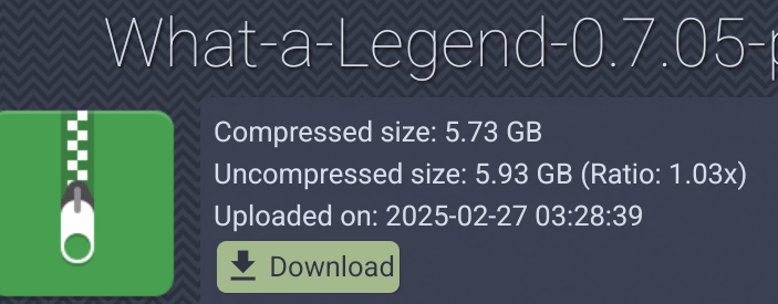 Pro tip: The Pixeldrain download option can show you the uncompressed size (and even the compression ratio) of any files uploaded there. (Other download options may be able to provide that info too). You can always check there when that option is available.BTW with the game being 5.7 gb compressed, can anyone tell me how much space it takes up after unzipping? Before I download it, I just wanted to know. I do want to play it at some point.
