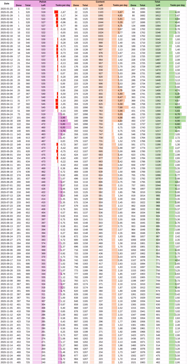From their weekly reports and other pieces of info they share for free on their discord server, they expect the polish phase to take less than 2 months, as they are quite happy with the work done so far. Plus the daily tracker is updated, well, daily, also on their Patreon page. The 2025 mention in their 'about' section seems just an overlook.