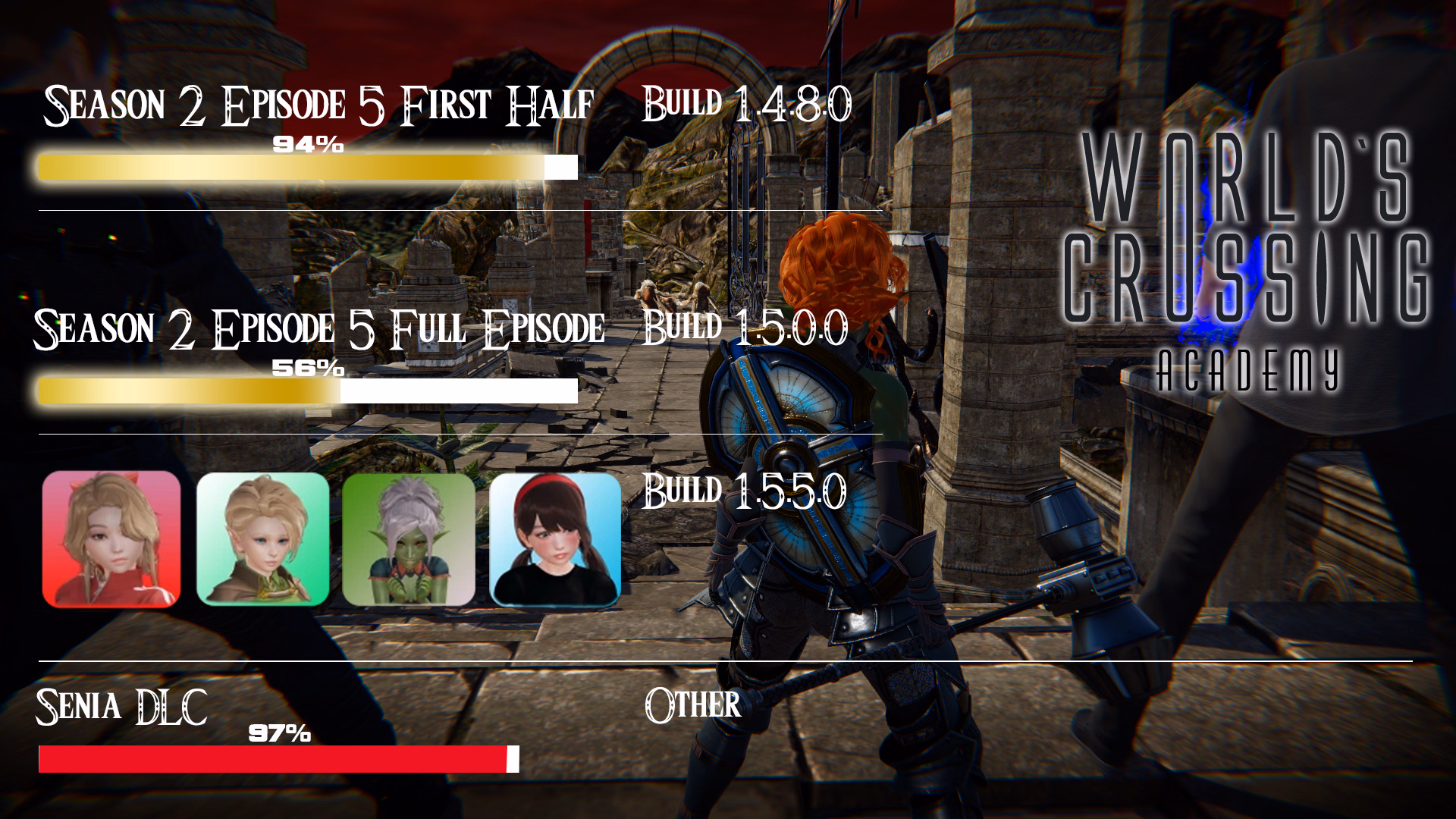 seems to me that these enormous quantity of dlc are becoming the main point by dev now...just looking at the progress posted above...Senia dlc is nearly done when the rest is still far from being done..a pity..i played this a while ago but after the 3rd forced restart due to save incompatibility and change in code ...i stopped playing it...now this dlcs happened too to drain time from main game...