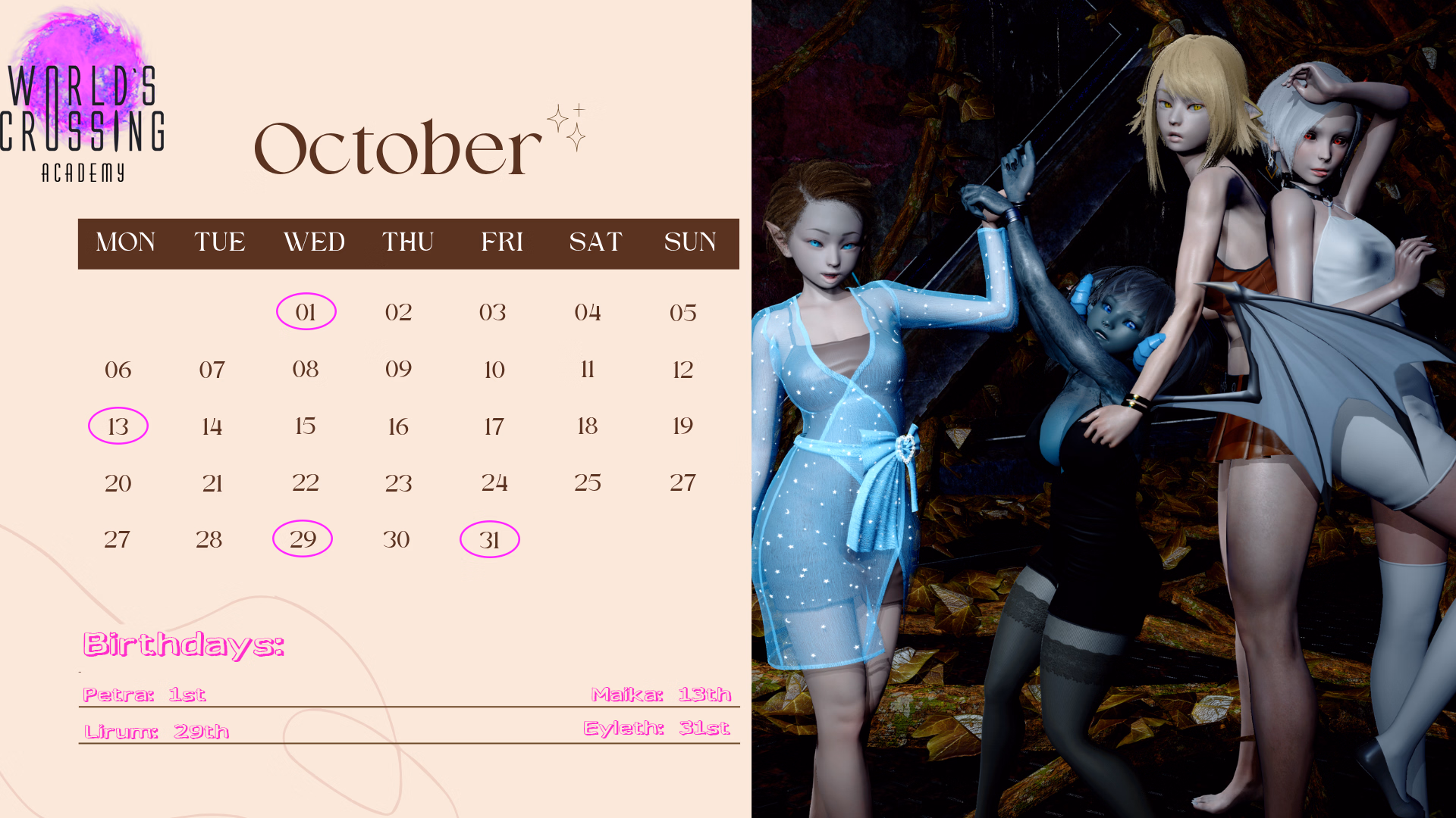 Free and Tier 1 supporters get the unwatermarked version and the full 4K render, as well. I also organized all of the calendars into a GoFile folder, so if you sign up on Patreon or SubscribeStar, you can download all of them in one go without having to hunt down each individual Calendar post. The SubscribeStar Calendar Collection is