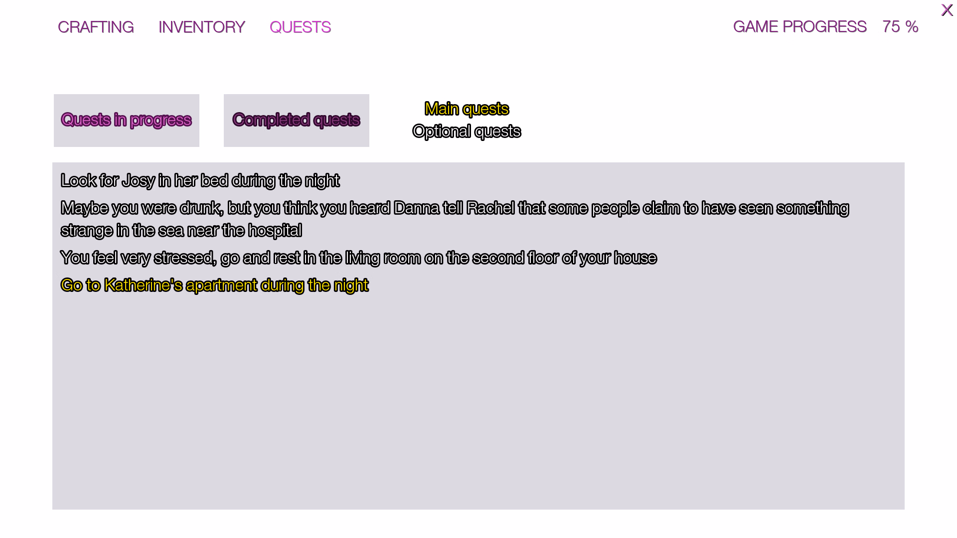 try to run to the door. i manage to get the e tooltip making me able to enter the bulding.May be the case, still stuck with no entrance to Katherine's apartment at night time.